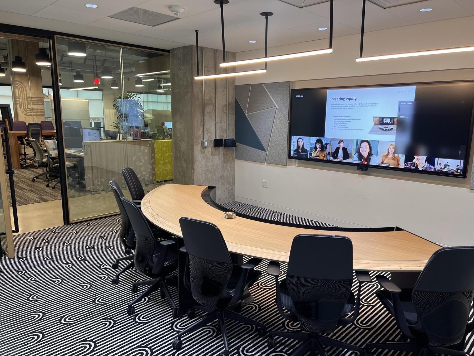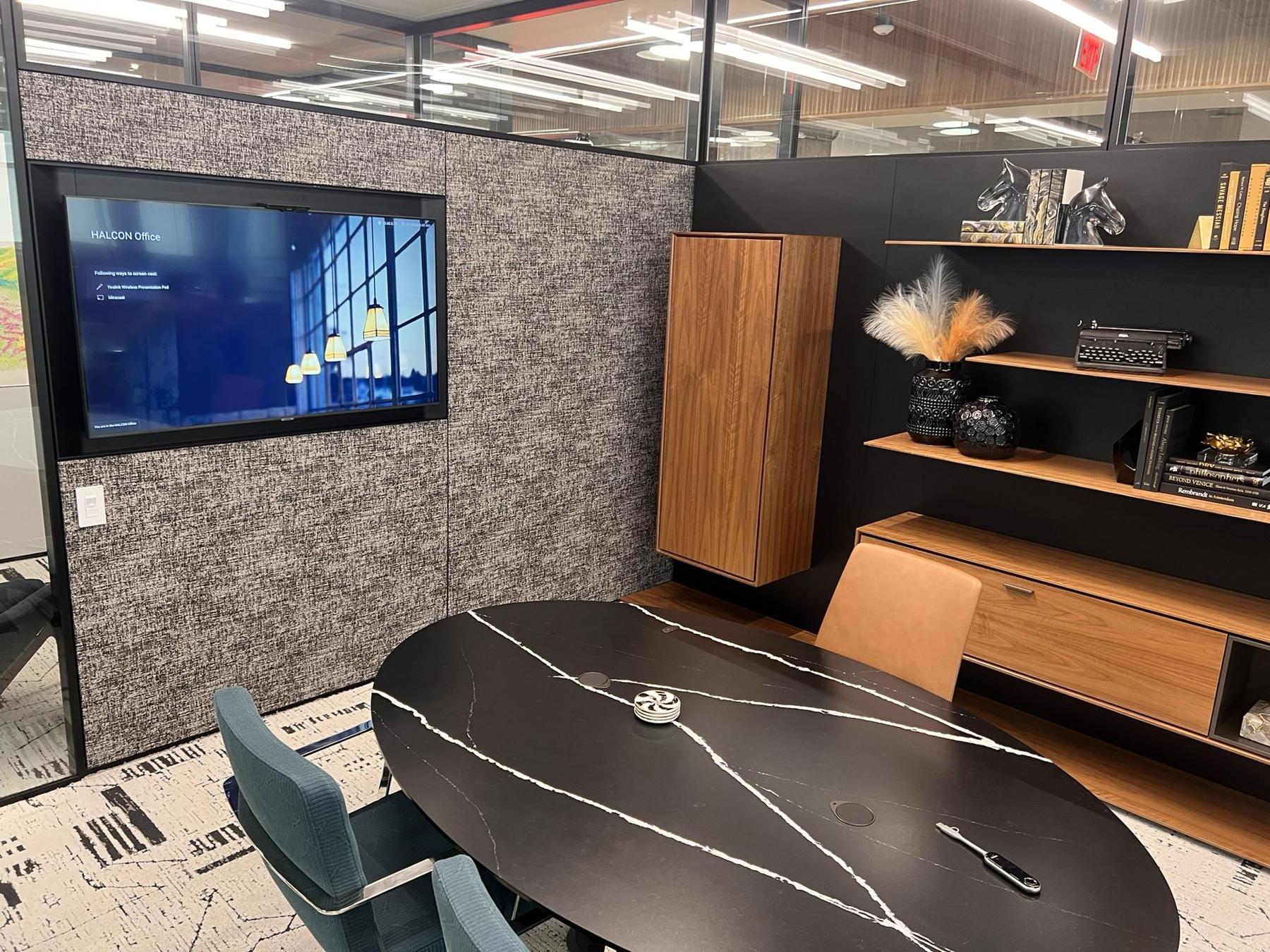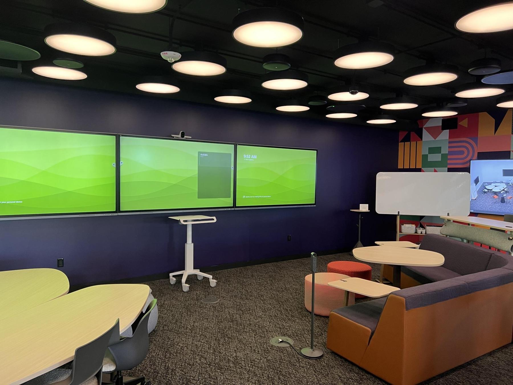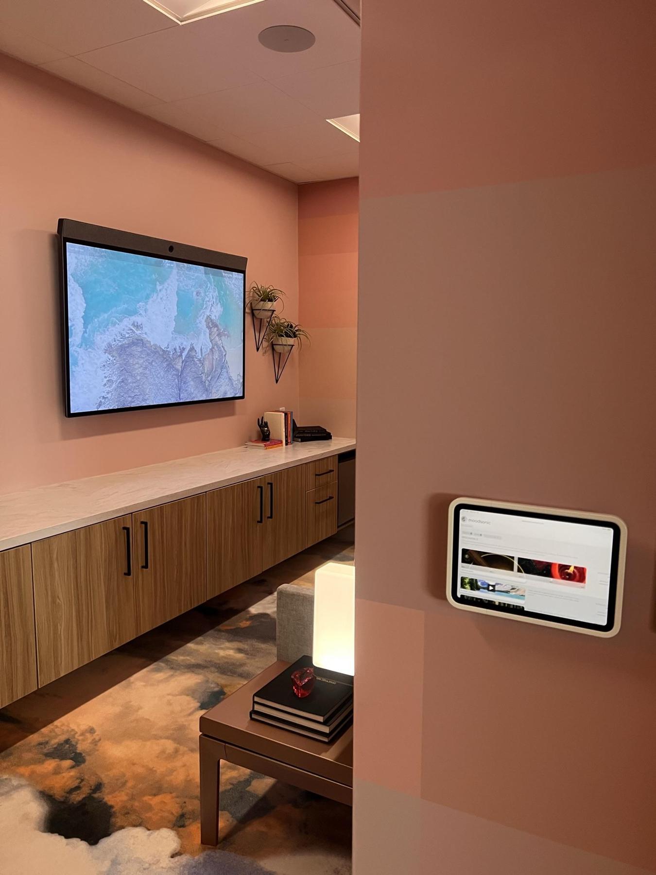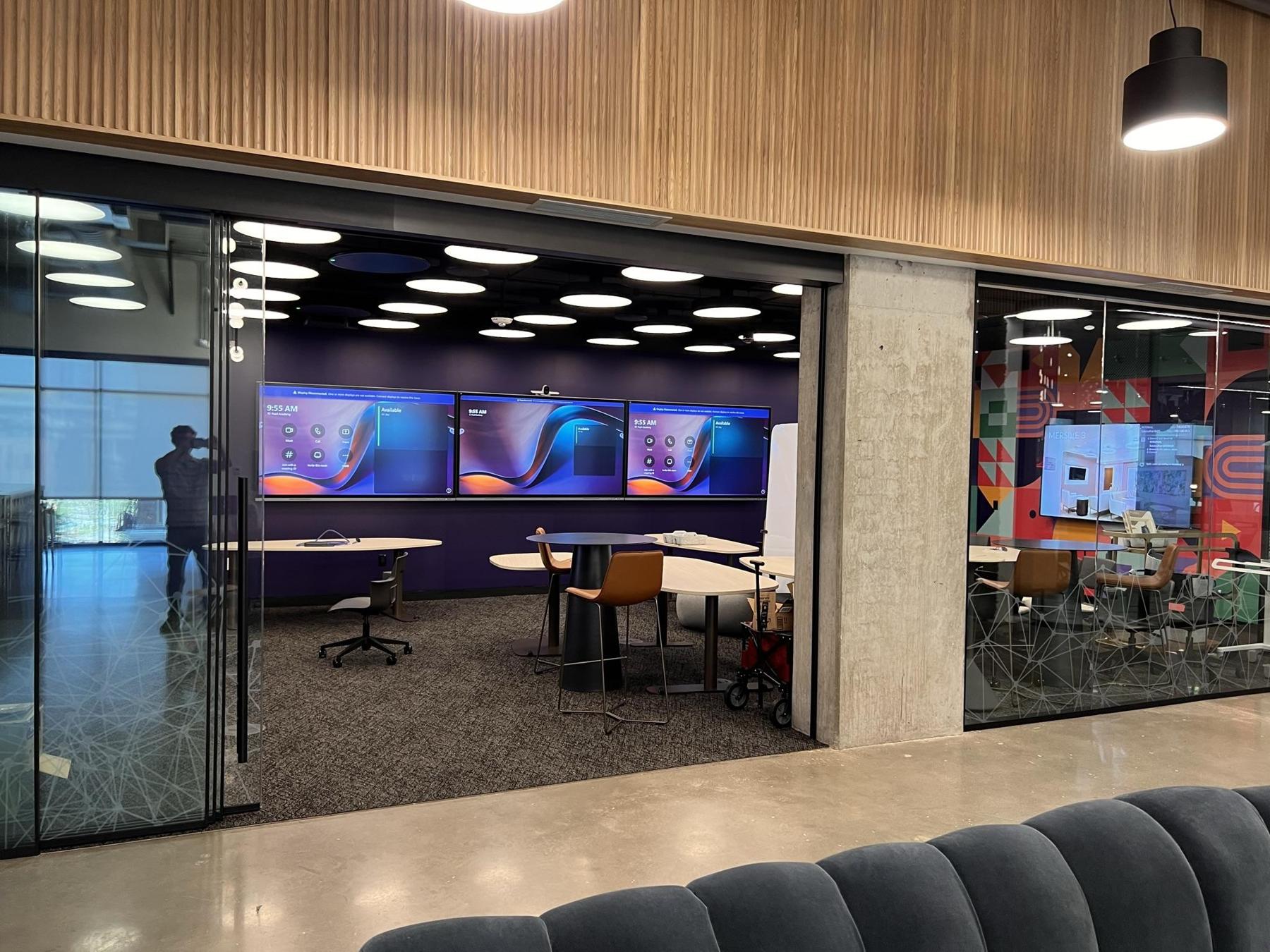 Featuring the coolest post-COVID workplace technology, including 5K 21:9 Jupiter Systems displays, Veiwsonic dvLED, Moodsonic realtime sound mapping and biophilic soundscapes, Bluesound audio player, Innovox/Sonance/Biamp/Bose loudspeakers, Snowsound acoustical panels, Shure/AT/Sennheiser beamtracking mics, Neat Boards/Frames, desk scheduling, and more!